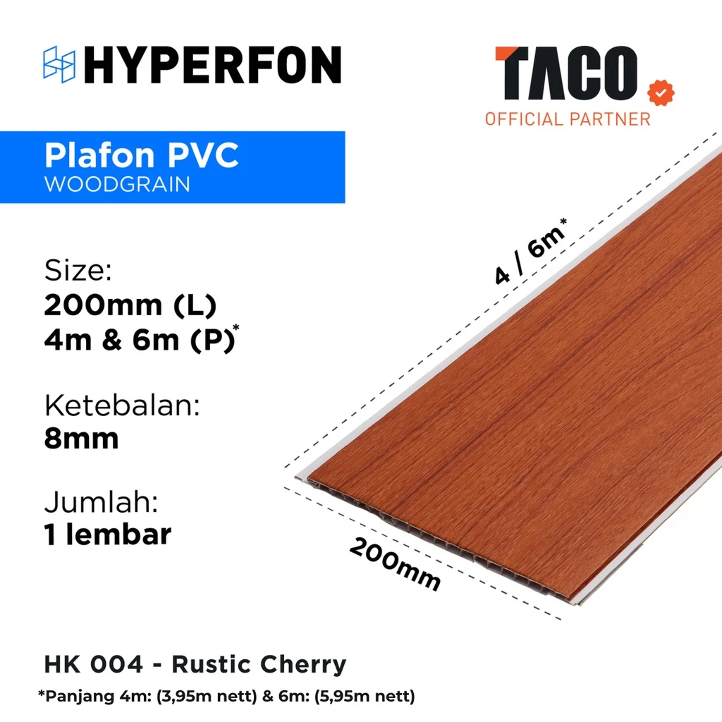 Plafon PVC Hyperfon hadir dengan desain premium yang memberikan sentuhan elegan pada setiap ruangan. Keunggulannya terletak pada motif urat kayu matt yang memberikan kesan alami dan mewah dengan harga yang lebih terjangkau.