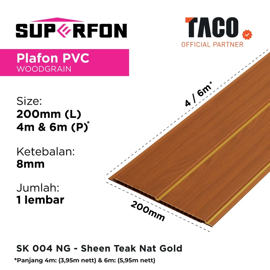 Superfon Plafon PVC Serat Kayu Glossy Tebal 8mm Panjang 6 Meter – SK 004NG Sheen Teak Nat Gold
